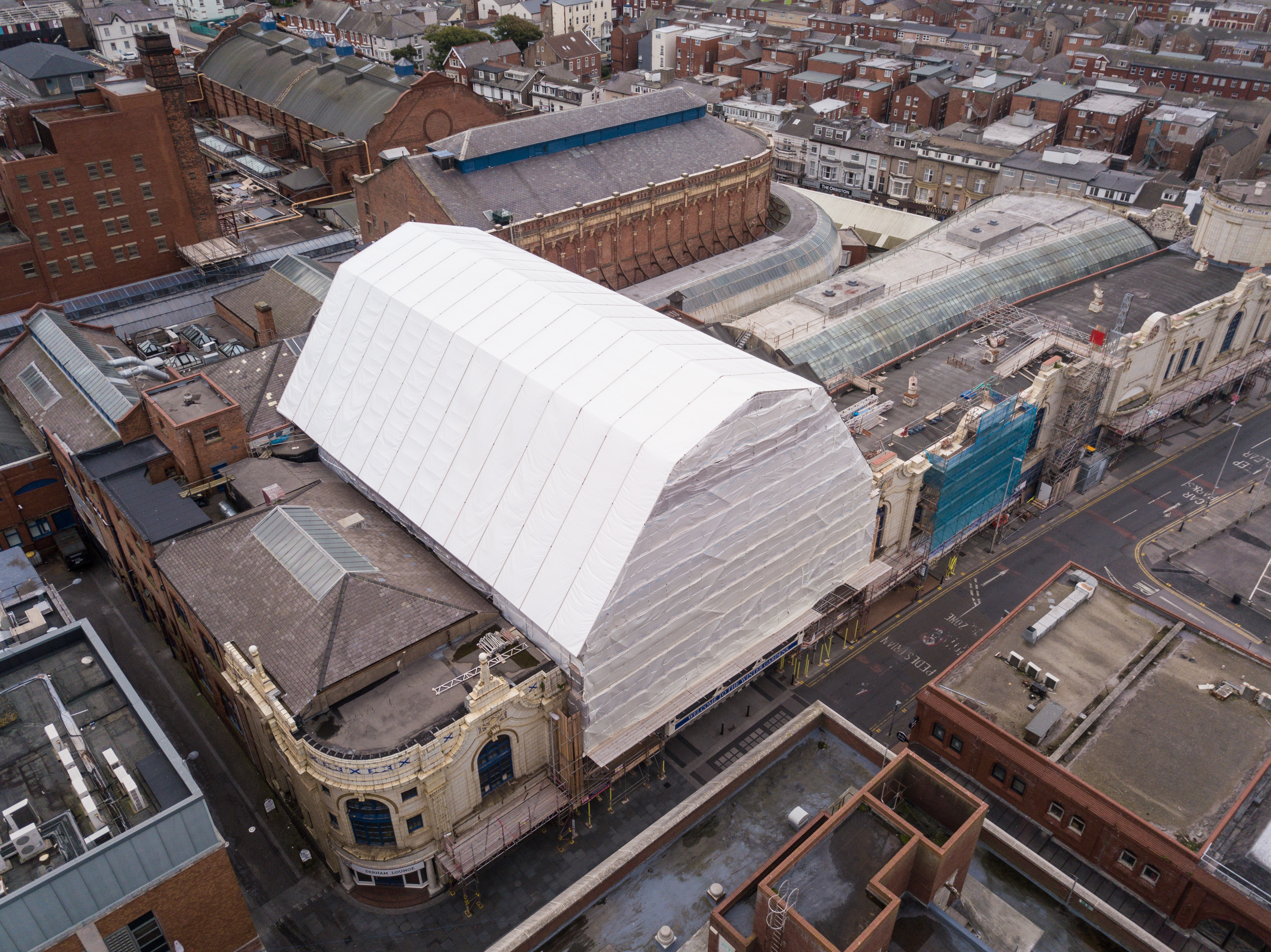 A £1.8m roof restoration of the Grade II* listed Spanish Hall, Winter Gardens ballroom for Blackpool Borough Council.